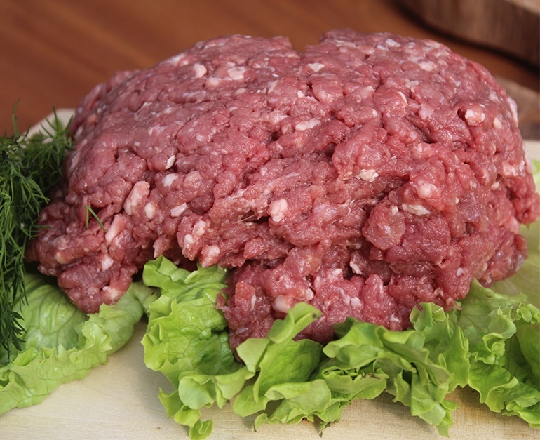 Натуральное рубленое мясо из молодой телятины, выращенной на натуральных кормах собственного производства!