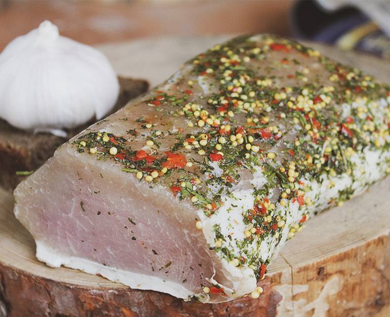 Филей изготавливается традиционным для Полесья способом — сухим посолом с добавлением натуральных специй и пряностей. Нежный, сытный, в меру соленый, вкусный и натуральный!