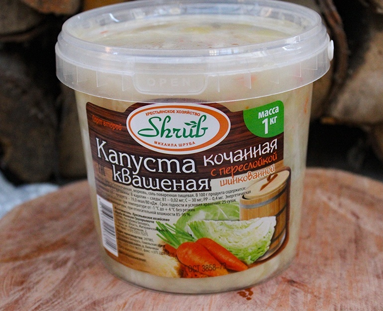 Состав: капуста белокачанная, морковь, соль поваренная пищевая