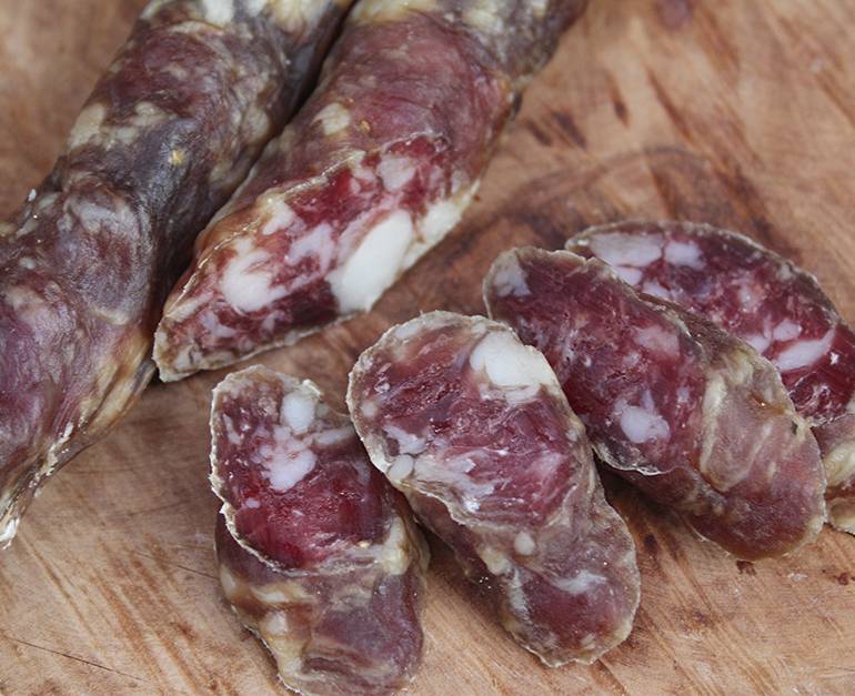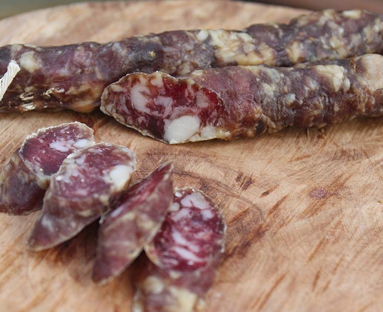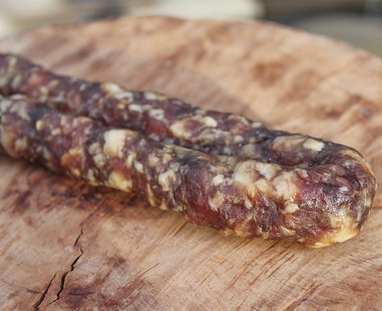 Натуральная колбаса, произведенная из отборного мяса, заботливо выращенного в нашем хозяйстве на кормах собственного производства! Натуральный состав. Мясо, ароматные специи и ничего лишнего!
