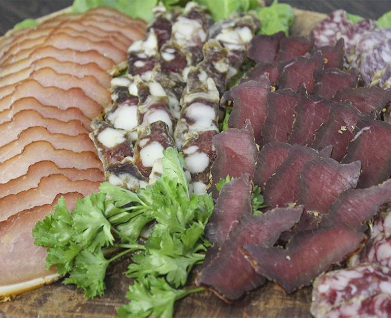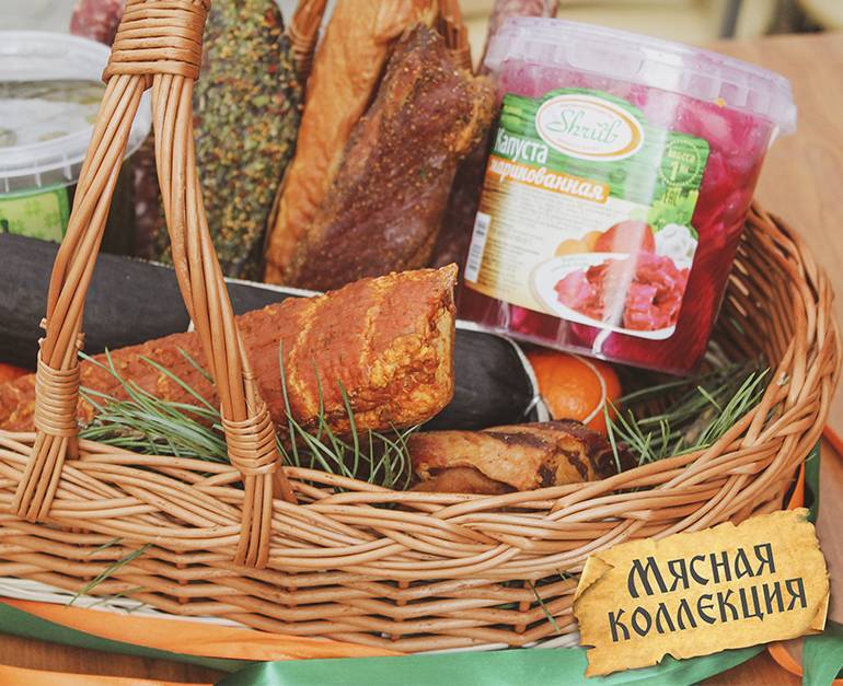 Набор «Мясная коллекция» включает полюбившиеся современному потребителю продукты — копчености, сыровяленые, сырокопченые колбасы, соленья, квашения. Это удобно, красиво, вкусно — для большой семьи, где каждый найдет что-то особенное, что станет любимый продуктом от нашего хозяйства!